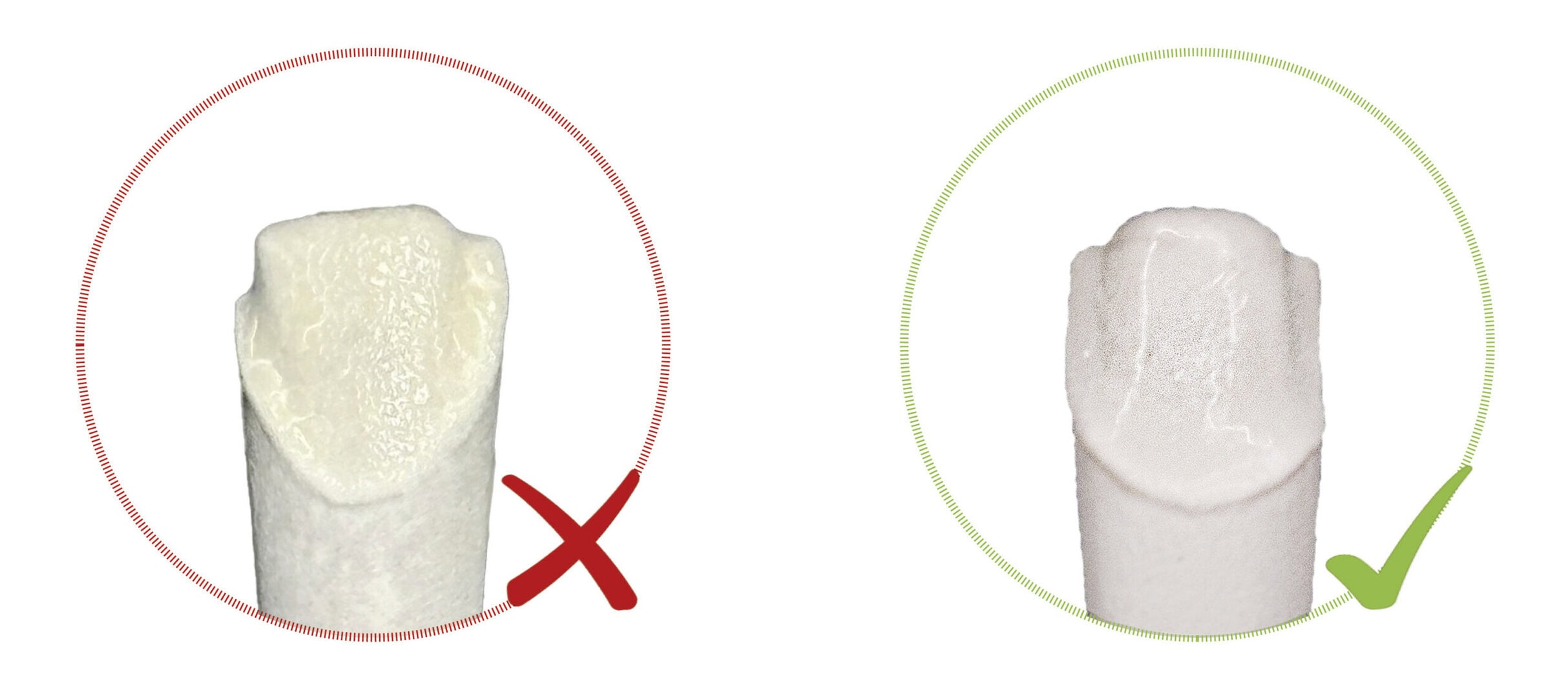 - Uma ampliação do espaço do coto de 0,06 mm é um bom ponto de partida, mas poderá ter de ser ajustada consoante a impressora 3D, a resina utilizada e o pré-processamento. Utiliza para isso o nosso GapTool e verifica o melhor ajuste possível do coto fresado nos corpos de controlo impressos.